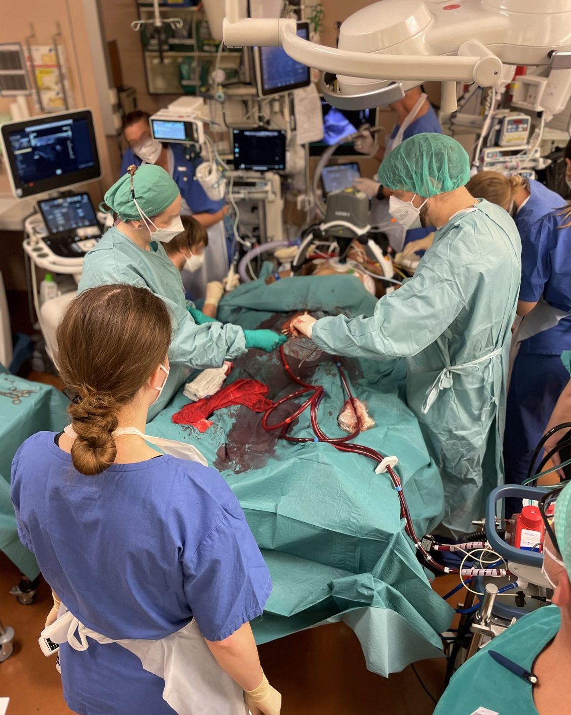 Die Universitätsklinik für Notfallmedizin verzeichnet die letzten Jahre einen stetigen Zuwachs an Patient:innen, welche eine extrakorporale (maschinelle) Kreislaufunterstützung (ECLS) mittels einer so genannten extrakorporale Membran Oxygenierung (ECMO) benötigen. Dies betrifft Patient:innen mit Kreislaufstillstand oder kardiogenem Schock, deren Herz- und Lungenfunktion kurzzeitig durch einen „künstlichen Kreislauf“ durch eine ECMO ersetzt werden muss.